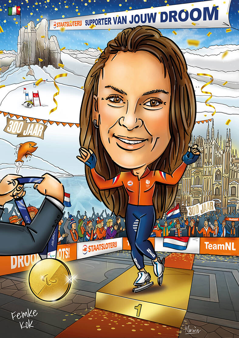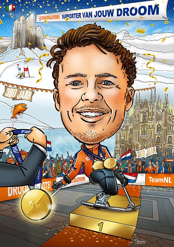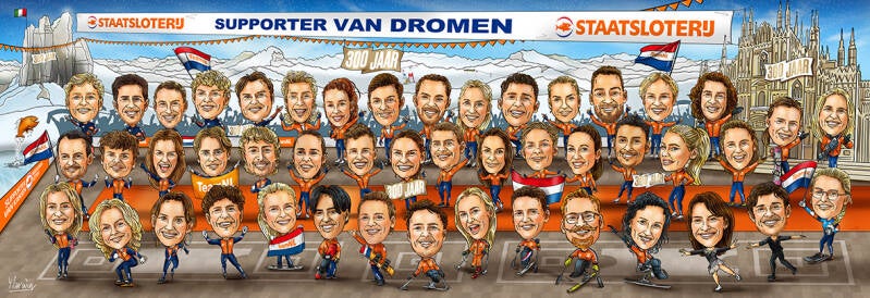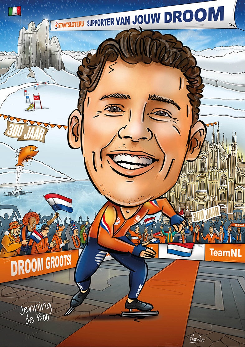 In 2024 gewerkt aan een grote opdracht voor de Nederlandse Loterij. Van alle 300 Nederlandse deelnemers aan de Olympische Spelen mocht ik een karikatuur maken. Bij aankomst in het Olympische dorp stonden deze als poster op hun nachtkastjes om de spelers te verwelkomen. Op social media ging de actie helemaal los.