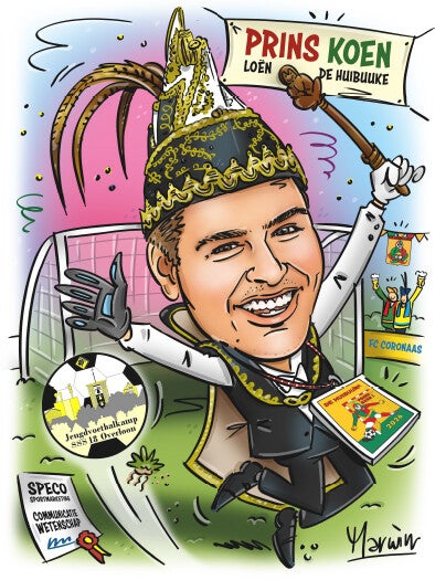 Zoek een geschikte foto van de persoon in kwestie. Mail of app deze door samen met een beschrijving van een aantal kenmerken, hobby’s, beroep, huisdieren, etc. Geef aan op welk formaat je de tekening wilt ontvangen: A4 (210 x 297 mm), A3 (297 x 420 mm), A2 (420 x 594 mm). Binnen een week is je karikatuur klaar en wordt als proef pdf aan je doorgestuurd. Na akkoord wordt deze digitaal of per post naar je toegezonden. Je kunt kiezen om de afbeelding als print of ingelijst te ontvangen of op doek (cancas) te laten zetten. Als T-shirt, mok, dienblad of zelfs als puzzel kan ook. Of gewoon digitaal! Zo eenvoudig is het!