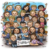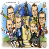 Deze heren kregen voor hun jubileum ieder een mooie karikatuur op doek cadeau.